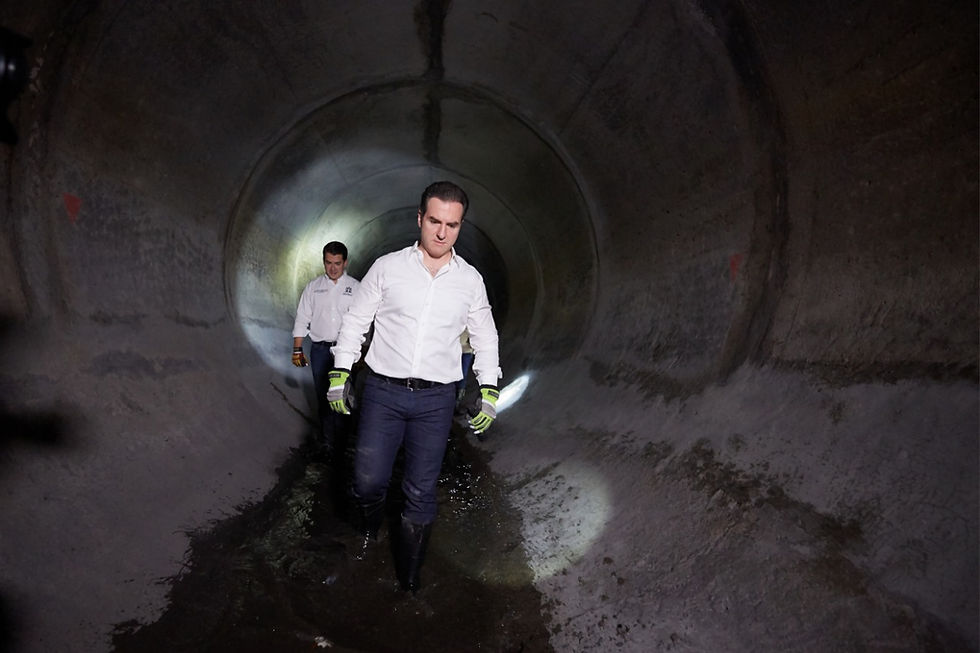 Ante la temporada de lluvias vigente en la ciudad, este jueves el Alcalde Adrián de la Garza Santos, supervisó los trabajos preventivos de limpieza en los drenajes pluviales de Monterrey. En compañía del Secretario de Servicios Públicos, Marcelo Segovia Páez y de una cuadrilla de trabajadores, se adentró en la alcantarilla situada en Prolongación Madero y José Martí en la colonia Fierro, donde caminó dentro del drenaje para conocer las condiciones de permeabilidad. “Una de las principales tareas que tenemos que estar haciendo para estar alertas y preparados es el tema de los drenajes pluviales, tanto las más de cinco mil rejillas o alcantarillas que tiene el municipio de Monterrey por donde se filtra el agua hacia los drenajes pluviales, así como todos los más de 150 kilómetros de red pluvial que tiene Monterrey”, reconoció el alcalde. El munícipe invitó a la comunidad a coadyuvar con la autoridad en el mantenimiento de los pluviales a fin de evitar inundaciones que se provocan cuando las rejillas del drenaje se tapan con basura que se tira a la vía pública y que arrastran las corrientes de agua. “Si aún no es suficiente la red de drenaje pluvial que tiene Monterrey, lo hace todavía más ineficiente el que haya basura en la calle y que se tapen las rejillas, entonces repito el exhorto a la ciudadanía a tratar de no tirar basura en la calle” pidió Adrián de la Garza. Recordó que, en la limpieza de parrillas, en solo tres días de lluvia de una sola rejilla se han llegado a recolectar hasta 28 toneladas de basura. Desde que inició su primer periodo al frente de la ciudad, y hasta la fecha, se han retirado más de 13 mil toneladas de basura y azolve de las más de cinco mil 400 alcantarillas, bocas de tormenta y registros que se ubican en Monterrey.